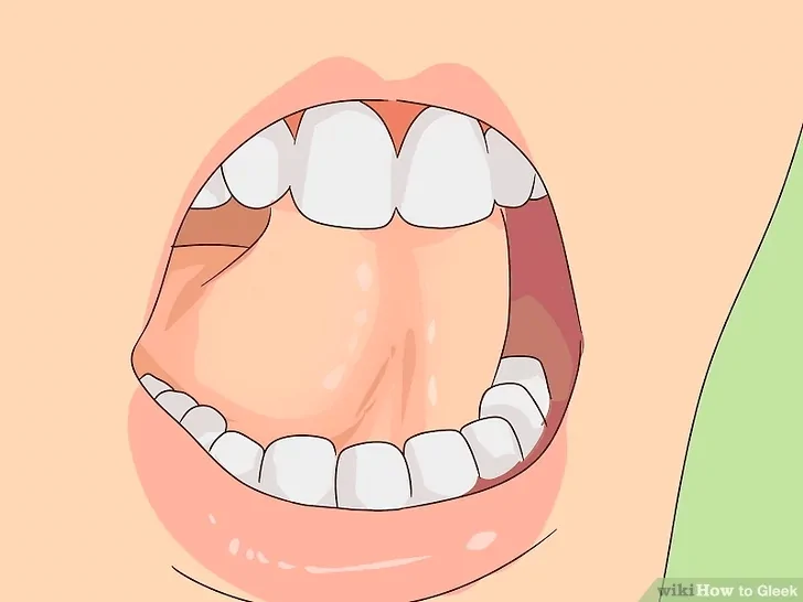 He suggested eating something sour because our saliva glands are activated when we eat. This increases our saliva production. Then, curl your tongue back inside your mouth until the bottom of it rests on the roof of your mouth, behind your top teeth.