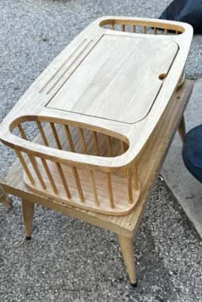 Reddit user crunchsmash identified this as a bed or lap desk. Originally, it would have a metal bar under the tray, allowing it to be propped at various angles, perfect for reading or similar activities.