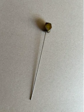 During a home renovation, a person found an object about six inches long with a stone on the tip. Despite Google’s suggestion that it resembles a pin, the tip is notably blunt.