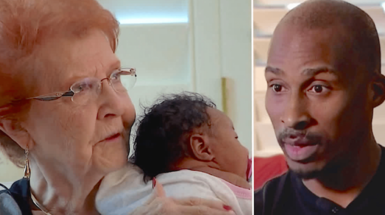 Older woman responds, “You’re coming with me,” after airline prevents dad from boarding the plane with the child.