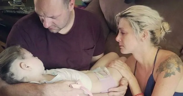 Hours before their brave daughter passed away from cancer, parents shared a devastating farewell image of them consoling her.